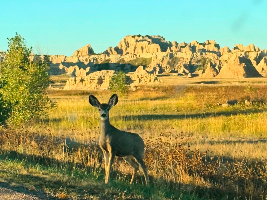 The drive through Badlands is beautiful. Each new turn revealed a new mountain or a view. Green and grey landscapes mixed with the warm colors of autumn grasses. Chris taught me the basics of photography while he hung out the window looking for any spare bird on a tall plant or hilltop. As is customary for men his age, his birdwatching persona has been emerging for a few years.